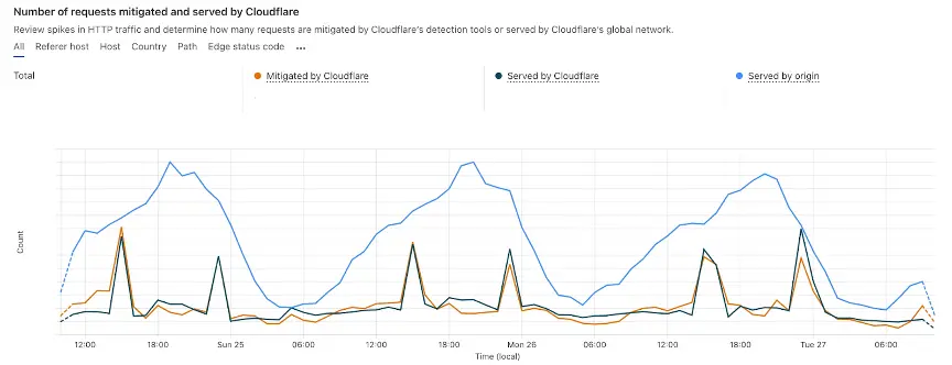 Post-launch, Gopuff saw a clear segmentation in traffic patterns. BrightData’s crawler activity, as well as activity from other previously unidentified scrapers, fell drastically. Gopuff was able to track which traffic was served, mitigated by Gopuff WAF rules, or blocked by Monocle: