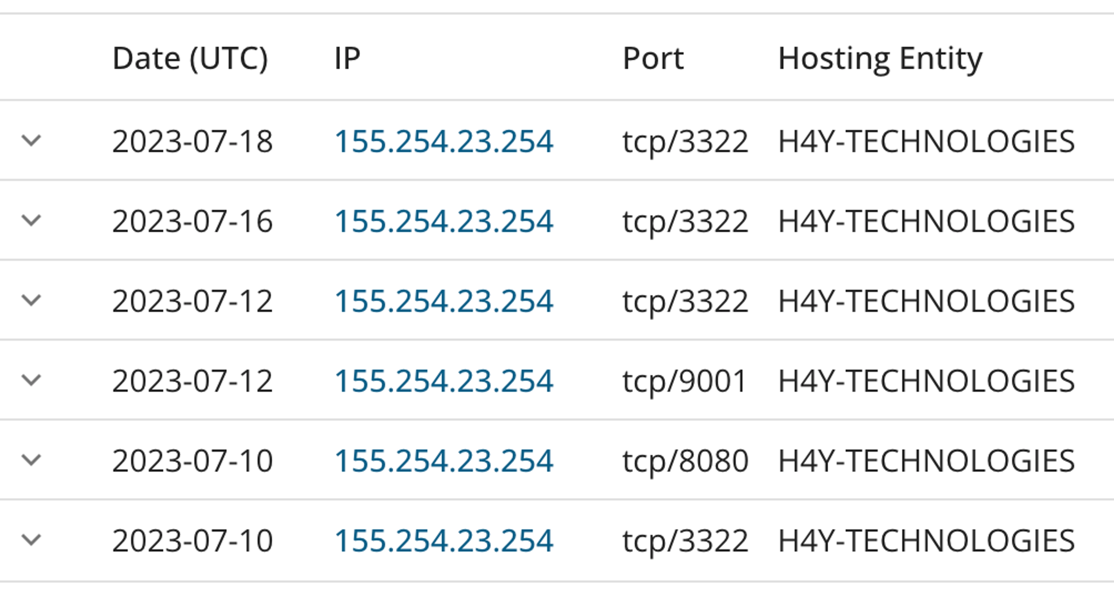 The proxy control servers appeared to still be online based on the indicators we use to track them. The below is a screenshot from driftnet.io, an excellent infrastructure profiling service showing a seemingly still-active SocksEscort control server after the decrease in proxy counts.