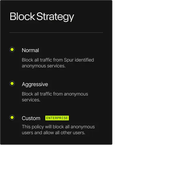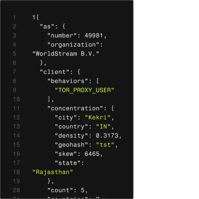 Detect anonymized infrastructure, validate user access, and accelerate incident response with Spur’s high-fidelity IP enrichment.